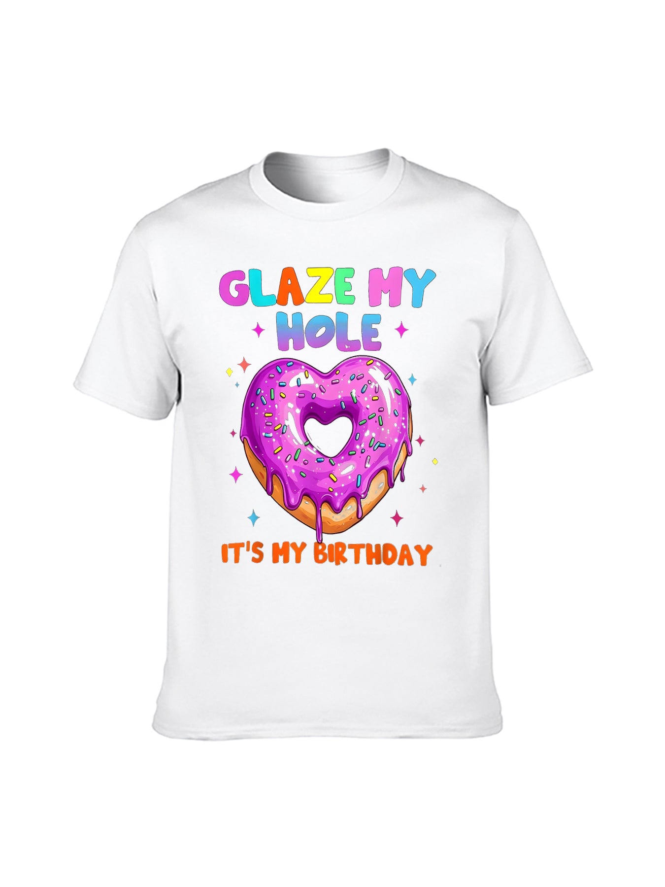 100% cotton loose fit graphic tee with playful donut print, perfect for birthdays, parties, or casual wear — customizable for a unique gift.