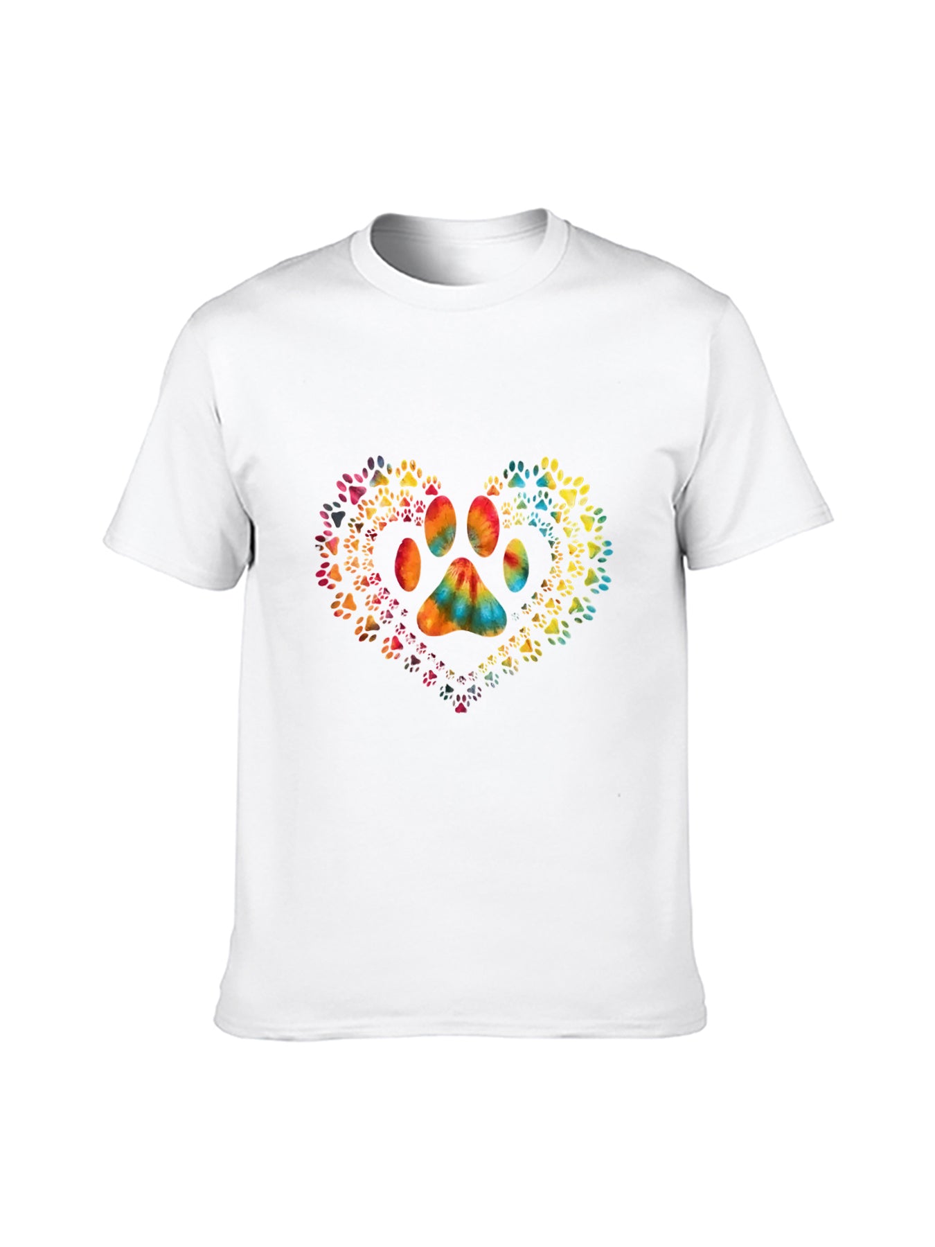 Men's 100% Cotton Graphic T-Shirt with Colorful Paw Print Heart Design