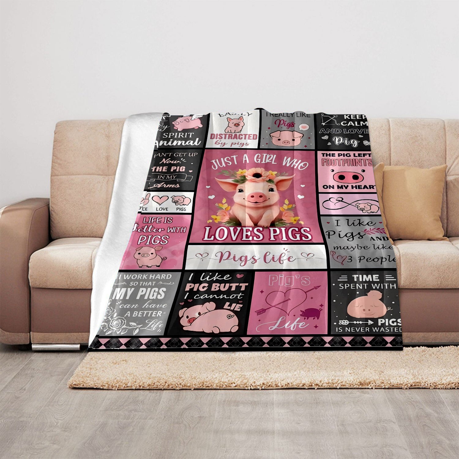 Pink Pig Cartoon Blanket Soft & Cozy Throw