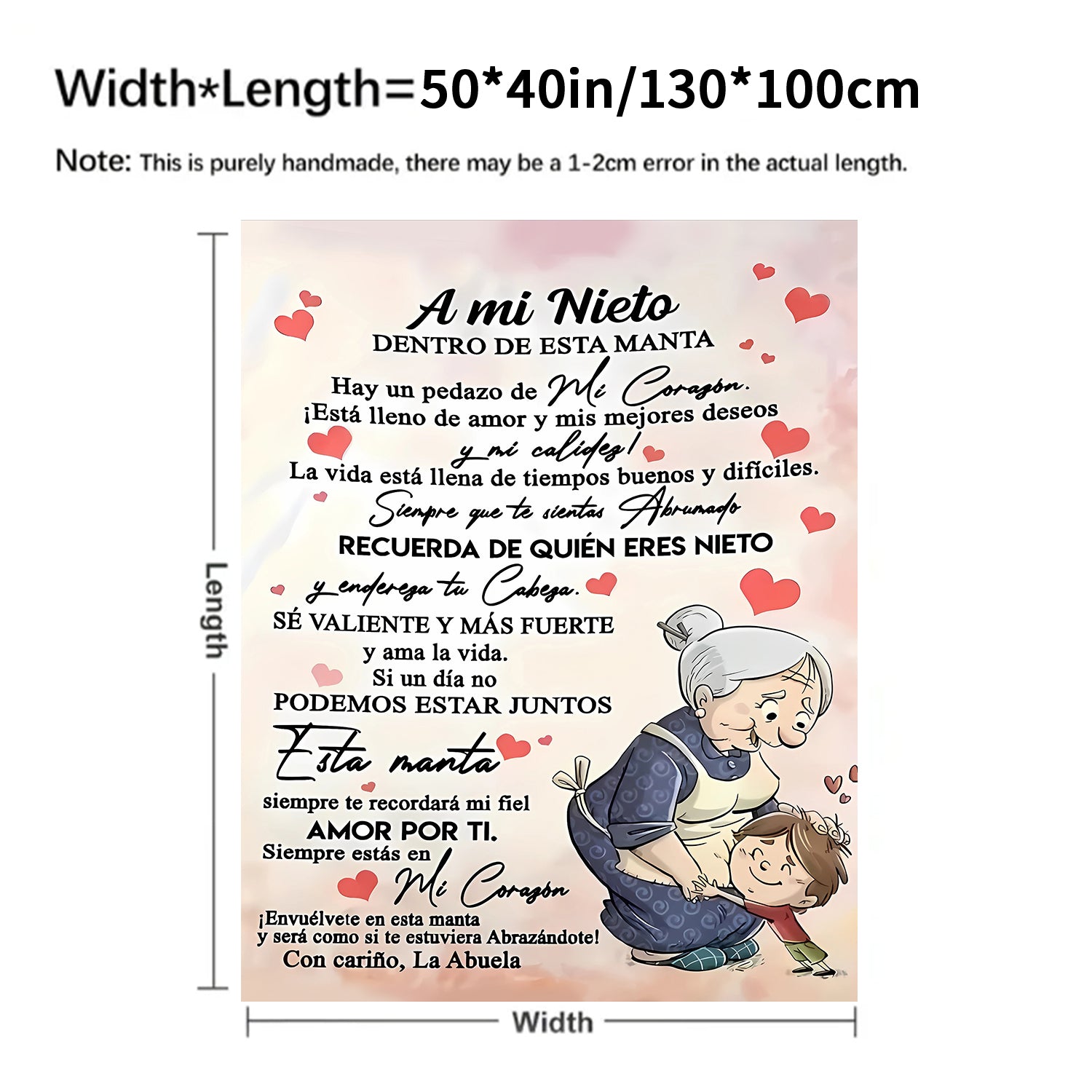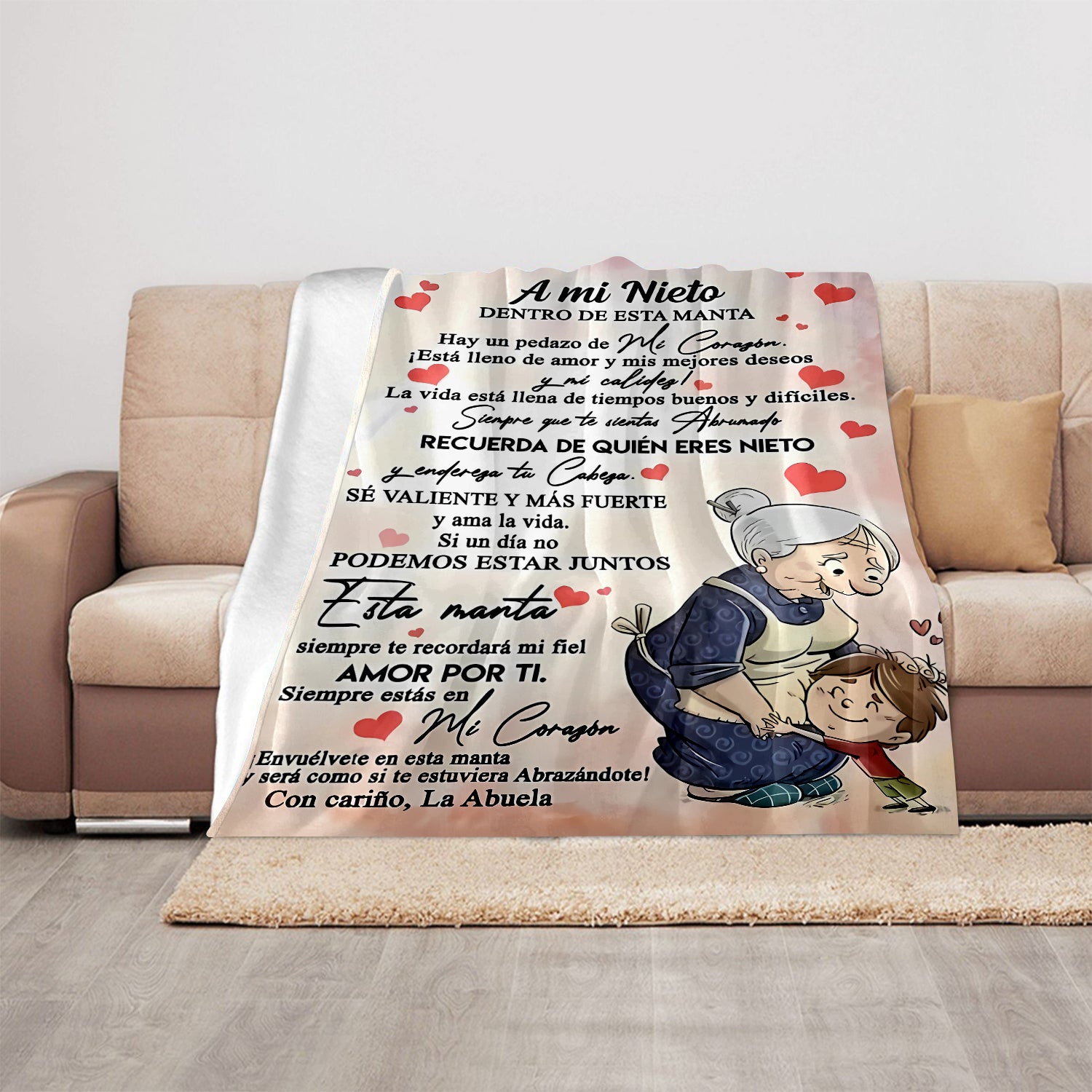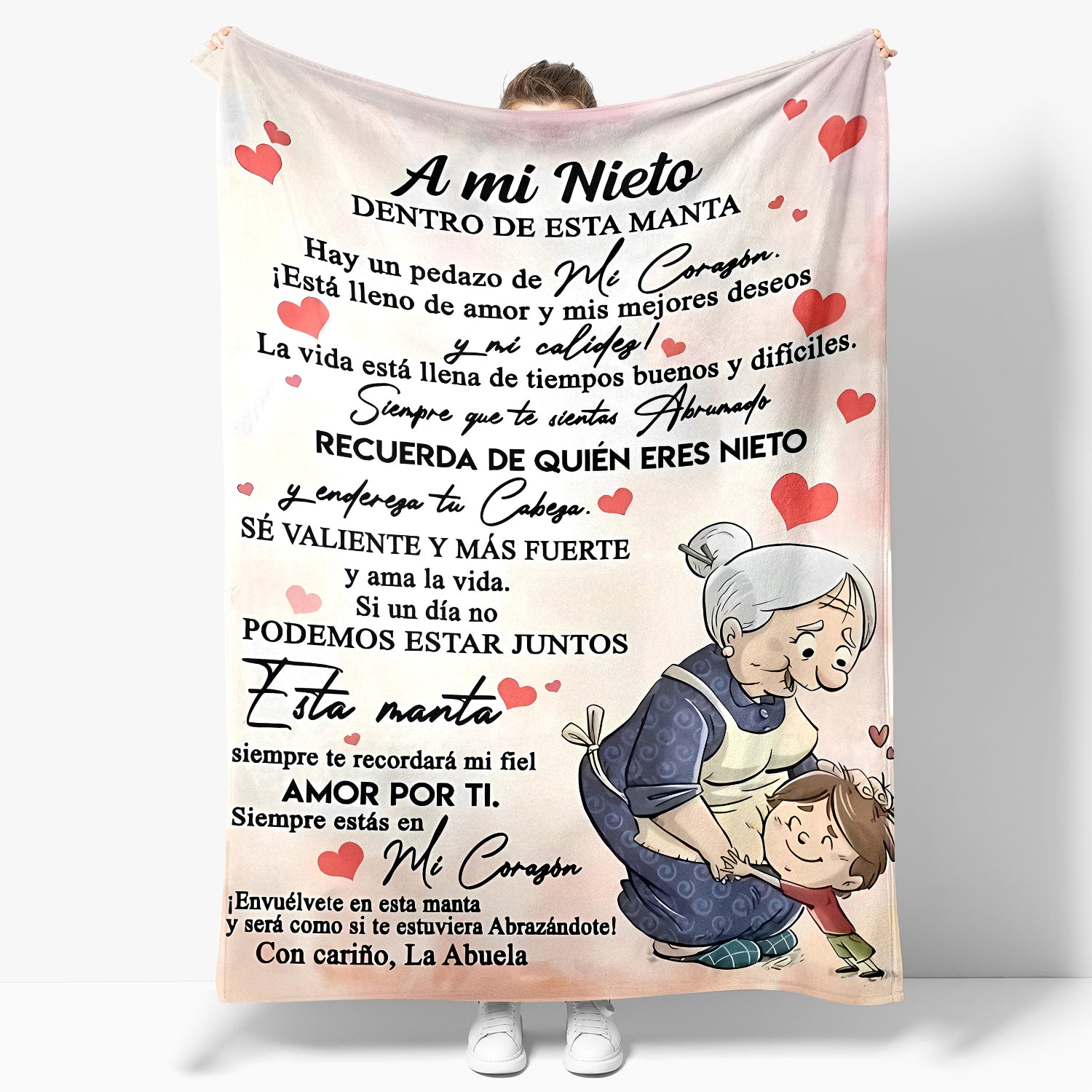 Soft Light Pink Blanket Grandma & Grandson with "A mi Nieto" Message